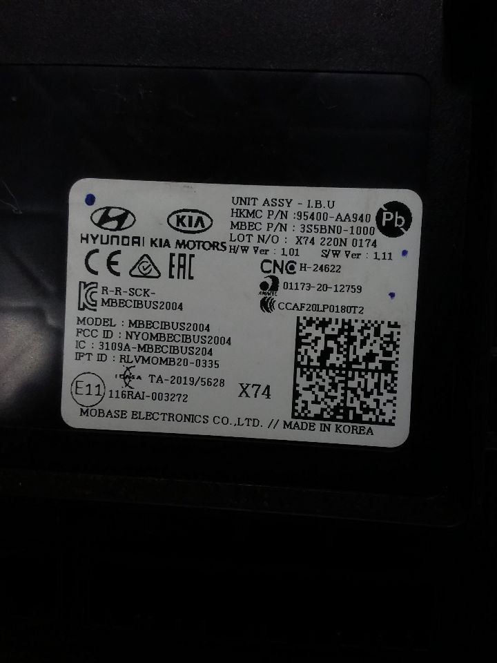 - Conditions & Options: 12/20,2.0,AT,BCM, 95400-AA940
