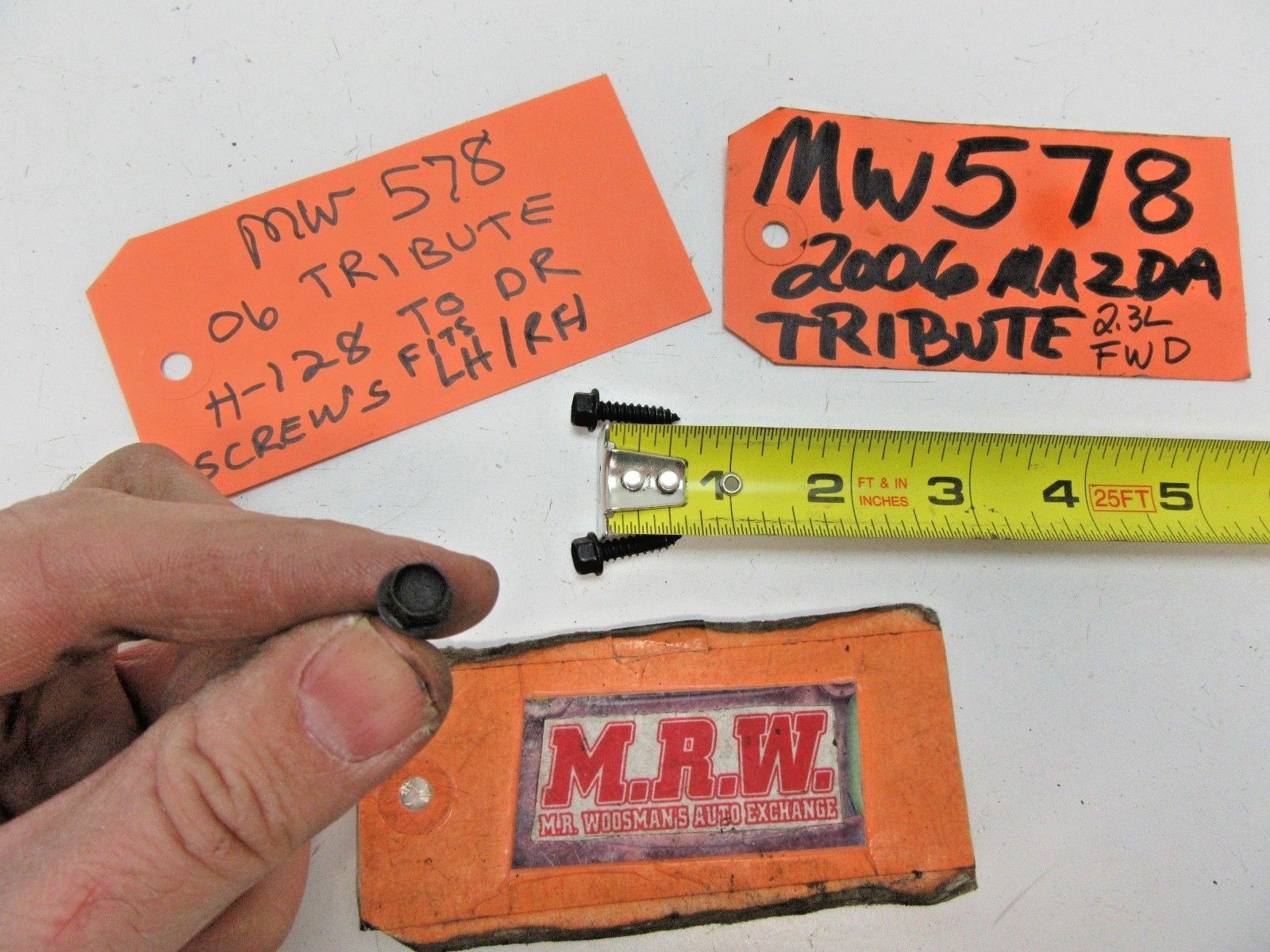**YOU ARE LOOKING AT ONE USED** **SET OF 3 BOLTS/SCREWS ONLY, AS SHOWN. THEY ATTACH THE SIDE VIEW MIRROR TO THE FRONT DOOR BODY.** **THEY FIT EITHER THE LEFT DRIVER OR RIGHT PASSENGER SIDE.** **IT IS OUT OF A 2006 MAZDA TRIBUTE WITH A 2.3** **L (DOHC) 4 CYLINDER ENGINE & 4 SPEED AUTOMATIC TRANSMISSION, 2 WHEEL DRIVE 2 X 4, EXTERIOR COLOR CODE: G2 REDFIRE METALLIC, INTERIOR TRIM CODE: 5T.** **PLEASE COMPARE YOURS TO OURS IN THE PHOTOS TO BE SURE THIS IS THE ONE YOU NEED FOR YOUR VEHICLE, BEFORE YOU BUY IT.** **IT IS USED BUT IN GOOD CONDITION.** **IF YOU HAVE ANY QUESTIONS PLEASE ASK PRIOR TO BUYING. ALL SALES ARE FINAL. WE SELL EVERYTHING AS-IS, NO RETURNS. LOOK FOR MORE GREAT ITEMS IN OUR STORE. THANKS & GOOD LUCK!