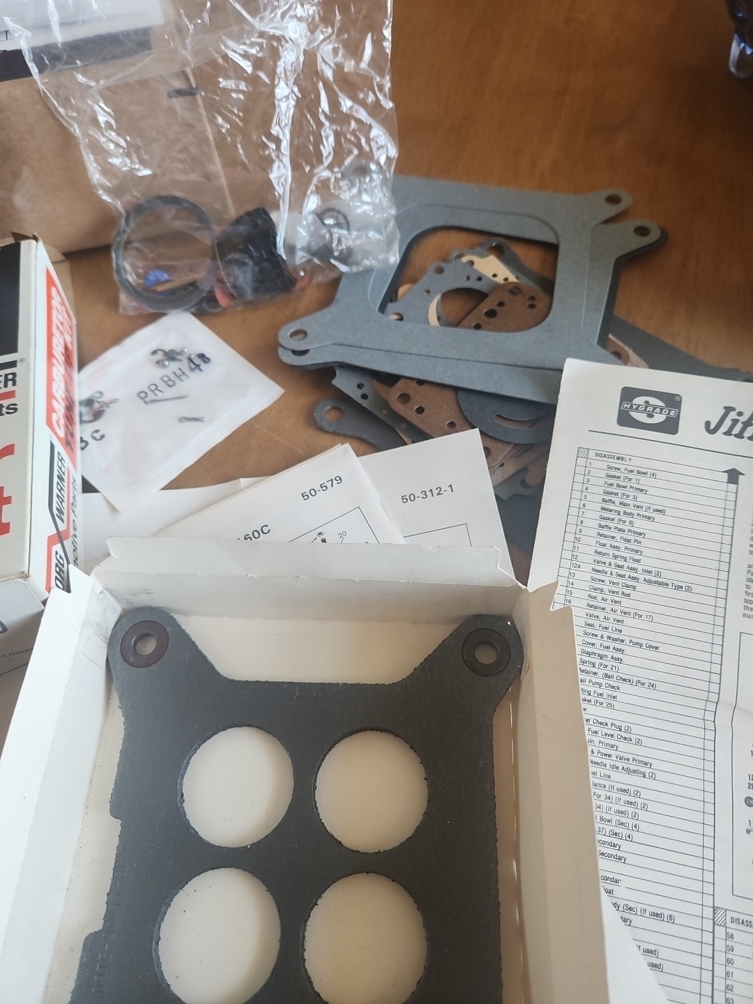 Some parts used -The Borg-Warner 10680 BARREL carburetor rebuild kit is a vintage part manufactured by Borg-Warner in the United States. This kit includes rubber and steel materials to rebuild a carburetor, specifically designed for the Borg-Warner 10050 model. It is not a performance part and is not universally fitting, making it a specific and detailed solution for carburetor maintenance. This NOS (new old stock) kit allows for the restoration of a classic vehicle's air and fuel delivery system.