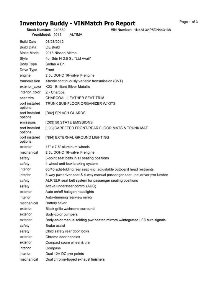 - Donor VIN: 1N4AL3AP5DN443168