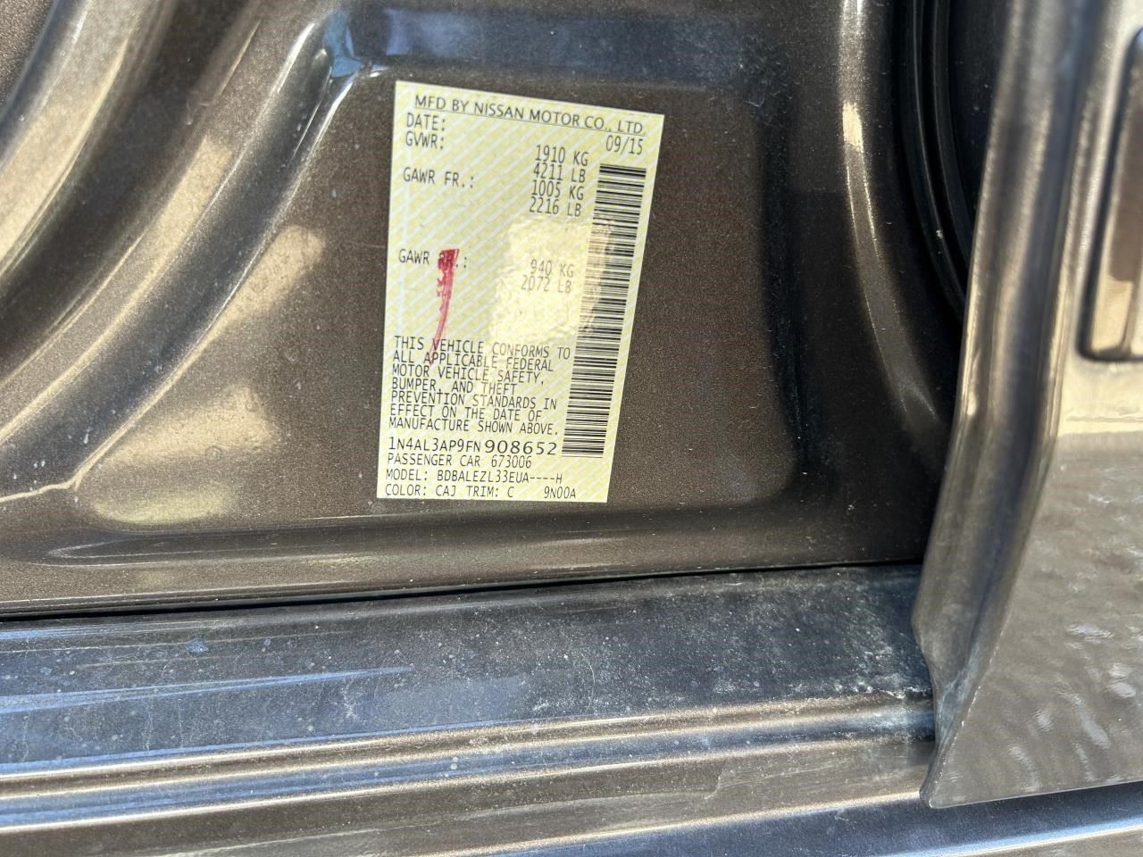 - VIN #: 1N4AL3AP9FN908652