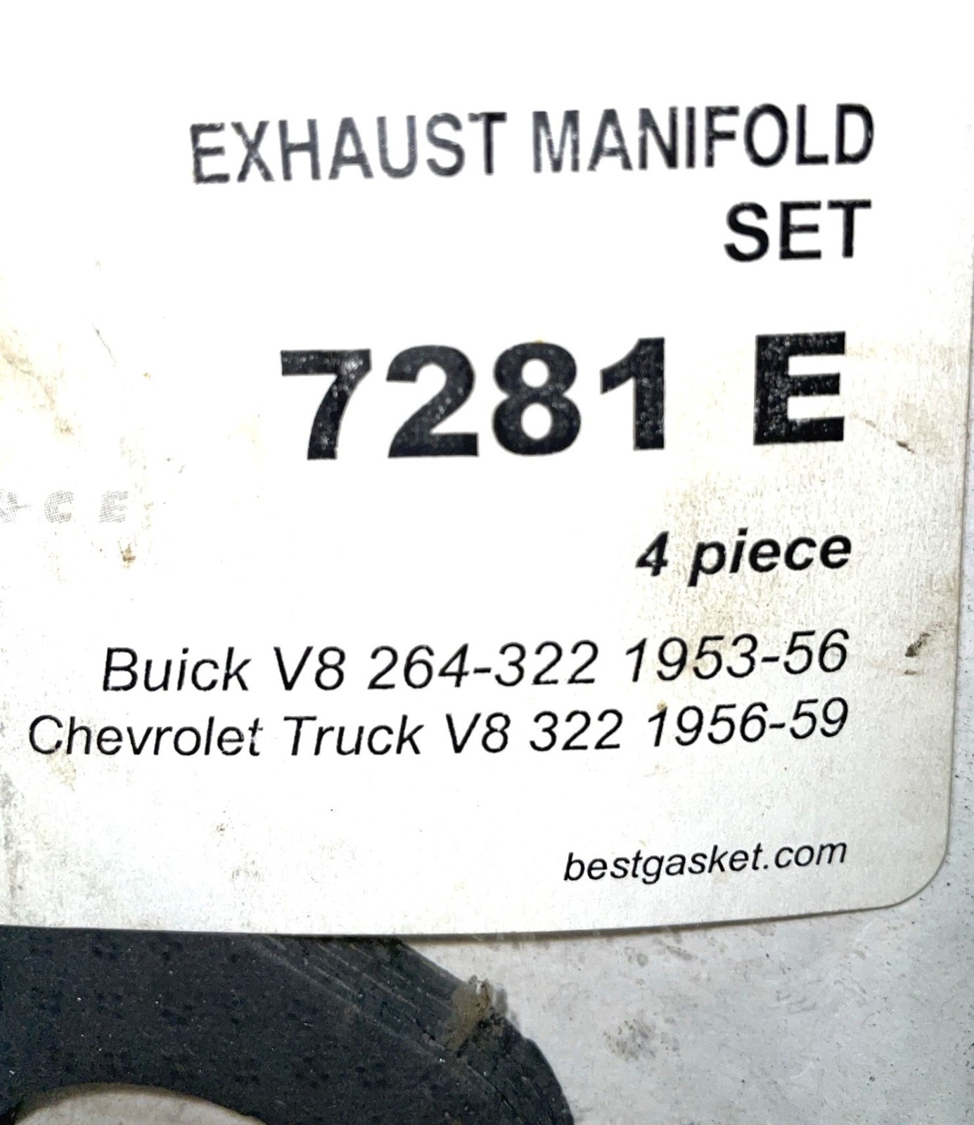 **BUICK CHEVY EXHAUST MANIFOLD GASKET** **SET for V8 322** **Buick Years: 1953 1954 1955 1956** **Chevy Truck Years: 1956 1957** **1958 1959** **New Old Stock Vintage Part in Original** **Packaging.** **This item was placed in a smoke free storage location for years and is in good condition.** **Close-up Photos show condition.** **I am a vintage vehicle hobbyist** **downsizing my inventory due to health.** **Sold AS-IS. No Warranty. No Returns.** **SELL TO USA \[48 STATES\] ONLY!** **Don’t be a shy watcher; make an offer today! :D**