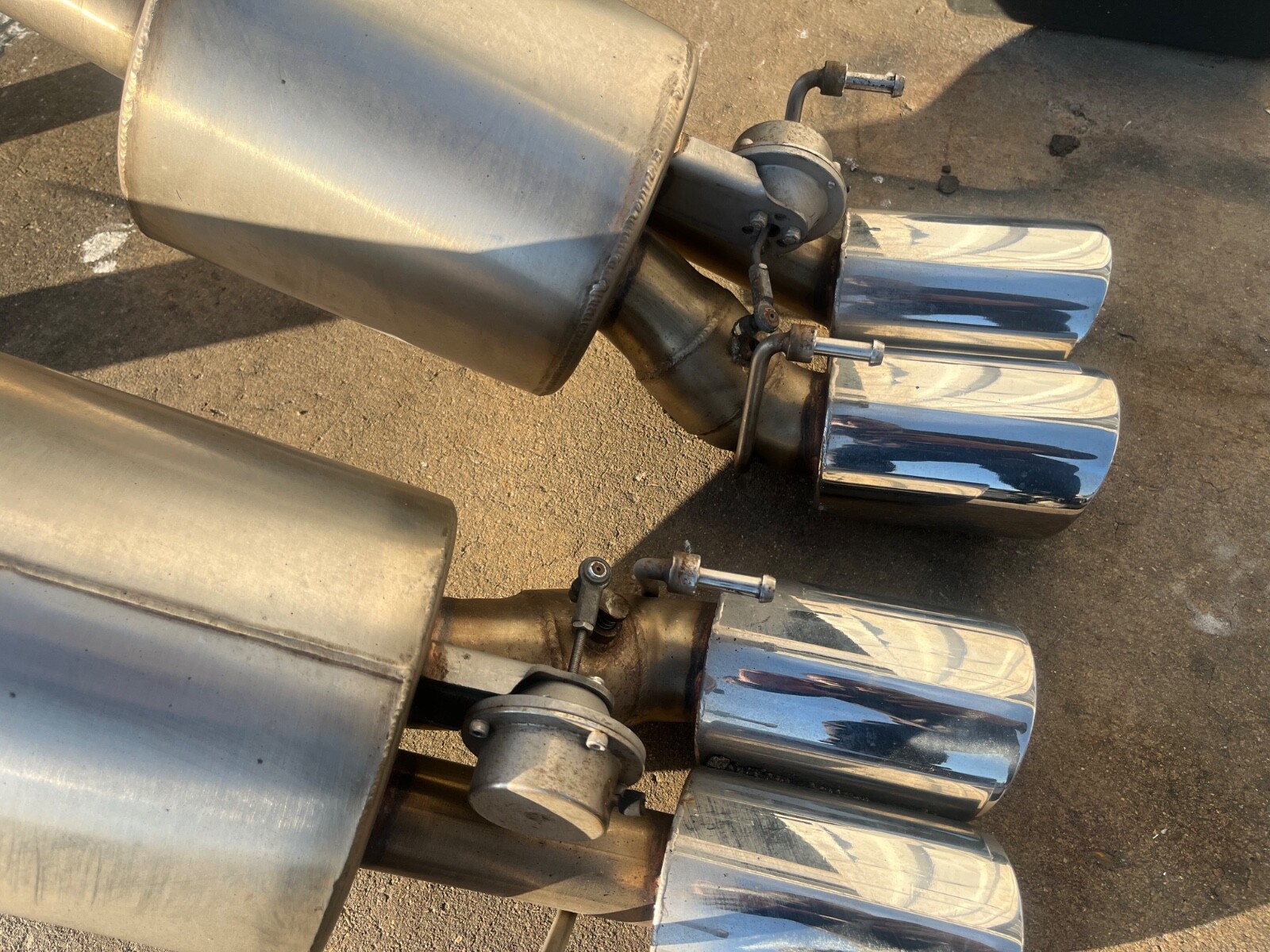 The Billy Boat Fusion is a bi-mode exhaust system, meaning it has two passages, or modes, that the exhaust can travel through the muffler. Each of the mufflers has two outlets, with one side having a butterfly type valve which allows the exhaust flow to be shut off, regulating which side of the muffler the flows exhaust. One side of the muffler is the “quiet” side, and one side is the “loud” side. The “quiet” side is a smaller, muffled and chambered tube, while the “loud” side is 3” tubing straight through.“ Exhaust is in excellent condition, everything is operating and in tact. Removed from 07 Z06. Fits 2006-2009 Z06/ZR1 and will fit other 2005-2013 models with minor modifications.
