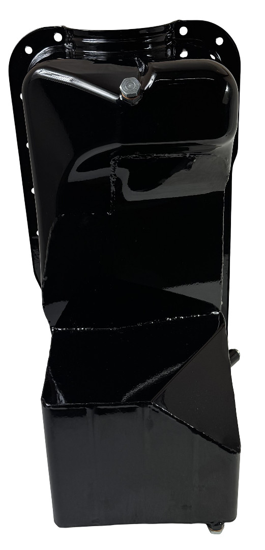This deep sump oil pan for 302 Fords is designed for 1966-1977 Broncos. It has an 10" deep sump for increased oil control and capacity and provides a 7 quart system capacity. This pan requires our 16-621 pickup. Oil Pan Features \\* 7 qt System Capacity \\* Crank Scraper \\* Slosh Baffle \\* Provision For Our Pan Mounted Dipstick \\* Two Magnetic Drain Plugs \\* Gloss Black Powder Coat Finish Recommended Accessories 16-621 - Pickup For 302 Rear Sump 16-620 Bronco Pan 20-950 - Pickup Mounting Stud for Ford 302 Based Engines 20-953 - Pickup Mounting Stud for Ford 351W & 302R Based Engines 20-850 - Steel Tube Universal Dipstick 20-854 - Braided Steel Flexible Dipstick 20-930 Windage Tray Ford 302 Rear Sump Screen 20-930P Windage Tray For Ford 289 302 Rear Sump Louver 22-360 - Stud Kit Oil Pan Mounting Ford 302/351W/Cleveland/Big Block Ford 88-602 - Small Block Ford 302 One Piece Oil Pan Gasket