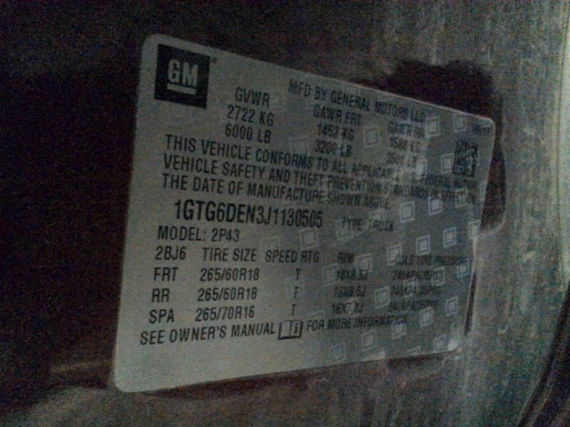 - VIN #: 1GTG6DEN3J1130505