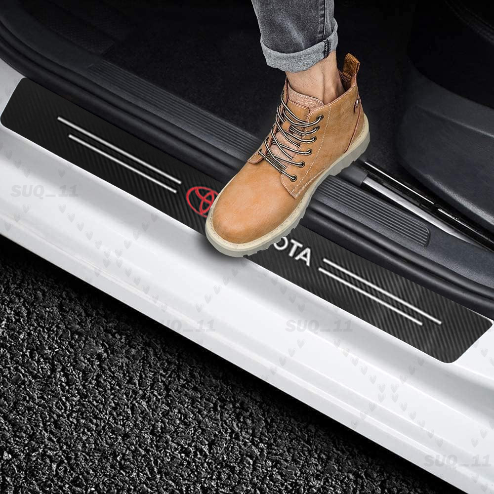 **Features:** **Door Sill Scuff Cover Stickers** - ******Made of high quality **Carbon Fiber Textured Faux Leather,** Anti Scratch and abrasion resistant, durable and effective in protecting **car door sills.******** - ******Easy Installation:****** P ******lease wipe the car door sill clean before installing, to ensure that there is no oil and dust first, then remove the protective paper on the back of the sticker, gently stick on the door sill above to ensure that no air bubbles are generated.****** - ********Simple Maintenance: When the car door sill protector reflective sticker is stained with dirt or oil, simply wipe it with a damp rag and it will look like new with a gentle wipe.******** **Door Cup Stickers & Door Handle Stickers** - ****Material: Carbon Fiber Texture Vinyl Stickers + Epoxy Resin**** - ********Self adhesive**, won’t fall of easily, will keep your door cups looking like new, without changing the appearance in any weather.****** ******No more scratches to the door handle cups****** - ******Easy to Install:****** ******Clean car door handle cup and let it dry, then****** ******tear off the protector film from adhesive backing,****** ******stick film onto the cup and adjust the perfect position.****** ****Package Included**:** - 4PCS Door Sill Scuff Cover Stickers (2 Front + 2 Rear) - 4PCS Door Cup Stickers - 4PCS Door Handle Stickers