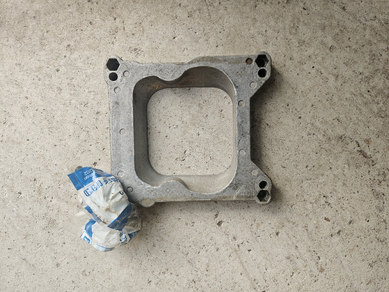 The Carburetor Adapter Plate 4bbl Square Bore to Spread Bore is a direct replacement kit made from durable aluminum alloy. Designed for a square bore manifold, this adapter/spacer style features an open center for easy installation. Some hardware is included. Thus is a good old quality made unit. Buy in confidence as I have a perfect seller record.