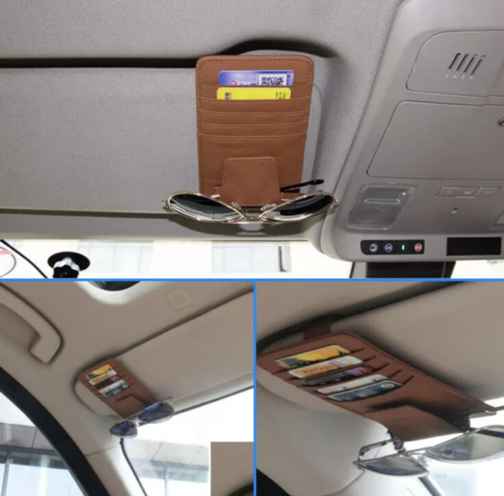 Cards Glasses Brown Leather Catcher Case Car Front Sun Visor Accessories Holder