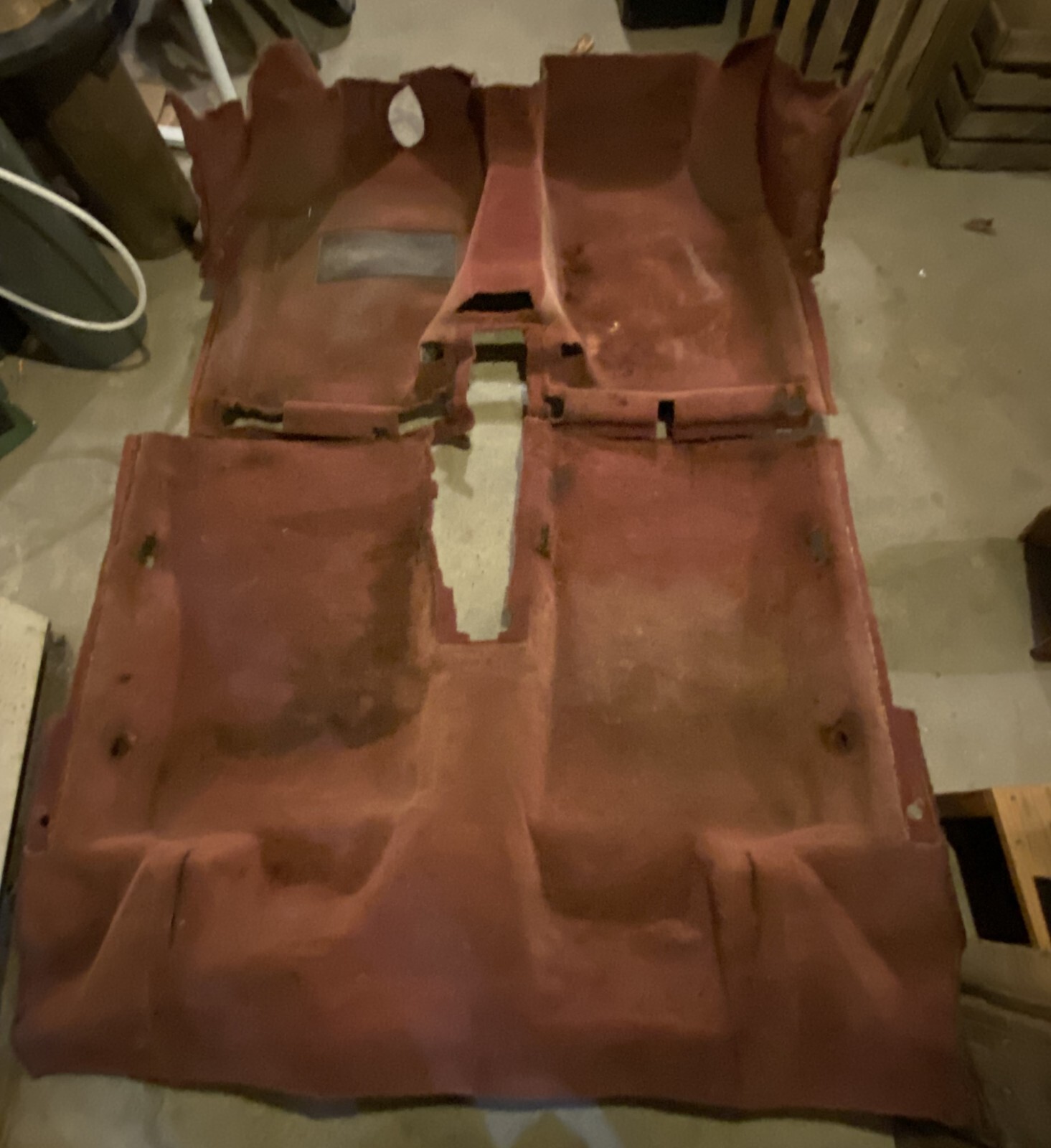 Red Carpet. Both Front and Rear sections. Front carpet section fits all 900 models 2SN, 3CK, 4SN, 5CK. except Convertible. Left Hand Drive only. Rear carpet section fits Saab 900 2SN or 3CK with 2 doors except Convertible. There are stains on the Right Front footwell and on the Left Rear. The center bump cover is included at no extra charge but makes the shipping more costly. Message me if you do not want that piece and I will refund the excess shipping after your purchase. I rarely offer carpets from the junkyard cars. This carpet was recently found in the loft of the barn. It was kept dry and out of the sun so it's in good condition structurally. Contact seller for appointment to come and shop parts from the barns, yard, basement, and storage vans. Seller is liquidating the inventory of Pellegrino's Saab Repair shop in Ithaca, NY.