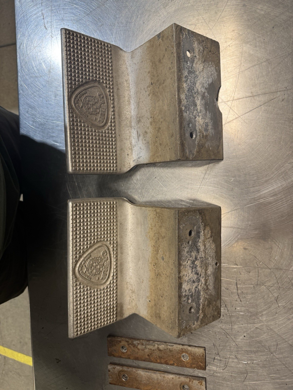 Used set of CARR aluminum vintage steps part# 1120 One of them has a chip In it that’s not visible when they are mounted These are universal for a lot of trucks or vans FAST FREE SHIPPING