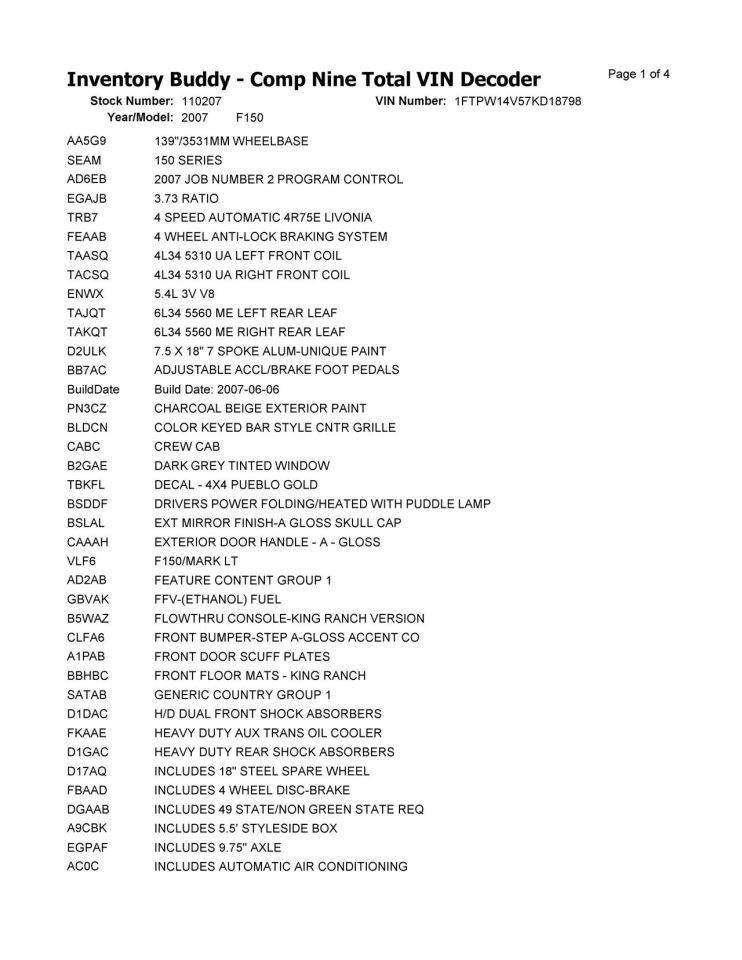 - Conditions & Options: 06/07,5.4L,AOD,KING RANCH
