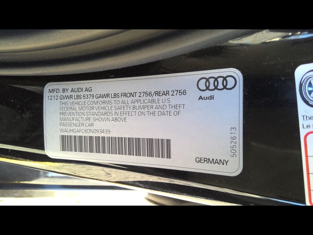 - VIN #: WAUHGAFC6DN093439