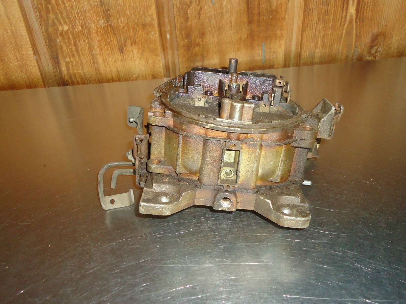 Carter Quadrajet 4-barrel carburetor, ID tag number 7028262. I am not familiar with all makes and models this fits. Please verify part number and pics match your application. Carb core appears to be mostly complete. Primary linkage moves free, secondary moves but is stiff from sitting. Air horn has a small chip by air cleaner stud hole. See pics for condition. Core for rebuilding or parts. Can not be returned if installed, ran or has been taken apart. Must be returned in the same condition as shown.