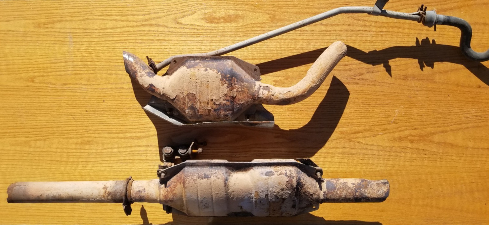 **NO****RETURNS** **& CALLING US LIARS BY CLAIMING "item not as described"!** **Or you will star in one of our YouTube video's and be** **permanently** **blocked!** **See Our 1%ers section below.** **Ok were parting a couple nice trucks from the 80's,** **so if you need something let us know.** **This listing is for..****.Catalytic Converters,** **in first 2 pictures. seems like they are complete as they arent light and nothing fell out when removed.** **Perfect for an Original Patina Driver or restore for show.** **Off** **the** **Blue** **1985** **XLT** **Regular Cab** **Long Box 4x4 6 Cyl manual, its sat quite a few years now.** **Parts may not be perfect but might be nicer than yours.** Hard to find! **Other parts pictured may be available in other listings.** **No other trim or parts included.** **So if you need something** **search our listings or store, if you don't find what you are looking for** **let us know.** **DO NOT ASK "HOW MUCH" Save us all the time, include a reasonable offer with your inquiry.** **Parts look good to us to restore, but look at pictures,****be your own judge, and do your own fitment research before purchase...no refunds, returns, guarantees, or warrantees expressed or implied.** **Shipping** **Shipping listed on oversize items is just an estimate, good for about half the country, and** **varies** **by location.** **We can get pallets to most places for under 200.** **If its big, no, shipping isn't a buck...you can guess in the 1000 range for complete cars.** **We do ship some things we sell if we have more than one reason to head that direction.** **1%ers Disclaimer** **By purchasing you are agreeing to these terms!** **NO****RETURNS** **& CALLING US LIARS BY CLAIMING "item not as described"!** This means no one percenters. As such, the 99% have the realization that the item they are buying is dirty, used, old and may have idiosyncrasies to match, and they not only appreciate that, but enjoy the thrill of the risk and embrace it all as part of the items individual story, character, and charm! Disgusting! So guess what? All that leads to is a item cost mark up and a lack of transparency in a break down of what you are actually paying for, all because of being duped by the propaganda sound of "free shipping". So don't even attempt in the notes of an offer to say "including shipping" or "combine shipping". So if you want "free shipping" or "combined shipping" do the 3rd grade math...subtract the shipping from the items asking price and offer that instead, then you can see what you are actually asking us to accept in real numbers, because shipping is NEVER FREE.Moreover, since items are not drop ship sellers so we have no idea of exact package sizes and weights, we can only estimate a shipping cost, we win some we loose some, when we loose by a few bucks we cover it, when we win by a few bucks we consider it making up for lost ground on the loses, and we consider it as a couple bucks handling. We are not shipping factory packaged blenders here. We have to source boxes and packaging material from several locations, store the boxes, then many times cut boxes to fit in an effort to artfully balance protecting your item while keeping the package dimensions inside specified shipping girth, and in cases where it still must go freight, we have to customize/build pallets for your order to meet the various shippers ever changing specifications. So...if you are a one percenter, this is for you! The described item is as pictured, if a picture is worth a thousand words, do not ask us to describe details or what condition the item is in beyond our purposefully short description of what the listing is for. Opinions vary wildly, and we certainly do not have the time to get to know all the idiosyncrasies of your project tastes and goals, in order to explain what is relevant to only you, that is obvious in pictures. You could be a Rat Rodder searching for a rusted out part that is missing on your Shock Rod, or a concourse restorer, or anything in between, we have no way of knowing. Also, items are many times pictured on the car, so READ THE SHORT DESCRIPTION of what the listing is for, do not assume because you think its related its included. "But it was in the picture." Yea, we picture other parts of the car so you can see the general condition, so the whole car was in the picture...did ya think the whole vehicle was included? READ THE SHORT DESCRIPTION. Furthermore, titles are just key words for ever changing search algorithms, if you don't understand that, go research it on Google. Many times we add words to titles because we see our customers using parts in an other than factory application, this does not mean we are parts interchange manuals, know you're own vehicle! So to be clear, the parts you are looking at may be between 30 and 80+ years old and may look like they came out of Oscars the Grouches residence, being dusty/dirty, perhaps even having Charlotte's web inside, feasting on dead flies. They probably came from abandoned vehicles in ungodly locations, which means, they were left to the elements and rarely moved, so sun fading, wind chapping and who knows what else may have occurred. When they were moved, they were drug by chains and tow straps, or pushed by tractors(with a tire between them if they were careful) by tired dirty farmers who just wanted to get the vehicle out of their way. So by purchasing, the buyer acknowledges they have received pictures of all items to their satisfaction, have seen they are rusty, dented, dinged, pitted, peeling, fading, cracking, torn, deteriorated, broken, smelly, dirty, bug and web infested used parts off of old vehicles that were abandoned to the elements and may even have the afore mentioned damage/rust/etc. that may not have been visible as with personal inspection, however, despite all this, the buyer has inspected pictures to their satisfaction, calculated their fitment and application, and has negotiated prices on thes