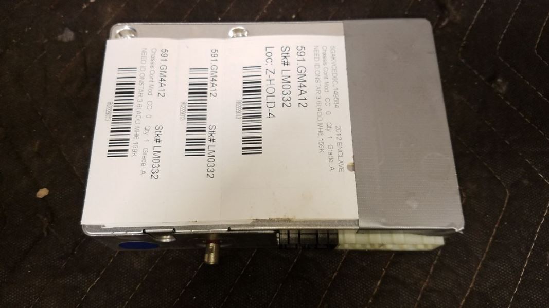 Description ONSTAR,3.6l,AOD,MH6,159K Mileage: 158000 This item will fit the following vehicles/applications: ACADIA 12 Communication; (LH quarter wheel well), w/voice recognition (opt UPF) AVALANCHE 1500 12 Communication; (OnStar, opt UE1), (center dash, behind radio), ID 22767377 AVALANCHE 1500 12 Communication; (OnStar, opt UE1), (center dash, behind radio), ID 22832743 AVALANCHE 1500 12 Communication; (OnStar, opt UE1), (center dash, behind radio), ID 22898335 AVALANCHE 1500 13 Communication; (OnStar, opt UE1), (center dash, behind radio), w/voice recognition (opt UPF) ENCLAVE 12 Communication; (LH quarter wheel well), w/voice recognition (opt UPF) ESCALADE 12 Communication; (OnStar, opt UE1), (center dash, behind radio) ESCALADE 13-14 Communication; (OnStar, opt UE1), (center dash, behind radio), w/voice recognition (opt UPF) ESCALADE ESV 12 Communication; (OnStar, opt UE1), (center dash, behind radio) ESCALADE ESV 13-14 Communication; (OnStar, opt UE1), (center dash, behind radio), w/voice recognition (opt UPF) ESCALADE EXT 12 Communication; (OnStar, opt UE1), (center dash, behind radio) ESCALADE EXT 13 Communication; (OnStar, opt UE1), (center dash, behind radio), w/voice recognition (opt UPF) EXPRESS 1500 VAN 12 Communication; (OnStar, opt UE1), (LH dash), ID 22767377 EXPRESS 1500 VAN 12-13 Communication; (OnStar, opt UE1), (LH dash), ID 22898335 EXPRESS 2500 VAN 12 Communication; (OnStar, opt UE1), (LH dash), ID 22767377 EXPRESS 2500 VAN 12-13 Communication; (OnStar, opt UE1), (LH dash), ID 22898335 EXPRESS 3500 VAN 12 Communication; (OnStar, opt UE1), (LH dash), ID 22767377 EXPRESS 3500 VAN 12-13 Communication; (OnStar, opt UE1), (LH dash), ID 22898335 SAVANA 1500 VAN 12 Communication; (OnStar, opt UE1), (LH dash), ID 22767377 SAVANA 1500 VAN 12-13 Communication; (OnStar, opt UE1), (LH dash), ID 22898335 SAVANA 2500 VAN 12 Communication; (OnStar, opt UE1), (LH dash), ID 22767377 SAVANA 2500 VAN 12-13 Communication; (OnStar, opt UE1), (LH dash), ID 22898335 SAVANA 3500 VAN 12 Communication; (OnStar, opt UE1), (LH dash), ID 22767377 SAVANA 3500 VAN 12-13 Communication; (OnStar, opt UE1), (LH dash), ID 22898335 SIERRA 1500 PICKUP 12 Communication; (OnStar, opt UE1), (center dash, behind radio), ID 22767377 SIERRA 1500 PICKUP 12 Communication; (OnStar, opt UE1), (center dash, behind radio), ID 22832743 SIERRA 1500 PICKUP 12 Communication; (OnStar, opt UE1), (center dash, behind radio), ID 22898335 SIERRA 1500 PICKUP 13 Communication; (OnStar, opt UE1), (center dash, behind radio), w/voice recognition (opt UPF) SIERRA 2500 PICKUP 12 Communication; (OnStar, opt UE1), (center dash, behind radio), ID 22767377 SIERRA 2500 PICKUP 12 Communication; (OnStar, opt UE1), (center dash, behind radio), ID 22832743 SIERRA 2500 PICKUP 12 Communication; (OnStar, opt UE1), (center dash, behind radio), ID 22898335 SIERRA 2500 PICKUP 13-14 Communication; (OnStar, opt UE1), (center dash, behind radio), w/voice recognition (opt UPF) SIERRA 3500 PICKUP 12 Communication; (OnStar, opt UE1), (center dash, behind radio), ID 22767377 SIERRA 3500 PICKUP 12 Communication; (OnStar, opt UE1), (center dash, behind radio), ID 22832743 SIERRA 3500 PICKUP 12 Communication; (OnStar, opt UE1), (center dash, behind radio), ID 22898335 SIERRA 3500 PICKUP 13-14 Communication; (OnStar, opt UE1), (center dash, behind radio), w/voice recognition (opt UPF) SIERRA DENALI 1500 12 Communication; (OnStar, opt UE1), (center dash, behind radio) SIERRA DENALI 1500 13 Communication; (OnStar, opt UE1), (center dash, behind radio), w/voice recognition (opt UPF) SIERRA DENALI 2500 12 Communication; (OnStar, opt UE1), (center dash, behind radio) SIERRA DENALI 2500 13-14 Communication; (OnStar, opt UE1), (center dash, behind radio), w/voice recognition (opt UPF) SIERRA DENALI 3500 12 Communication; (OnStar, opt UE1), (center dash, behind radio) SIERRA DENALI 3500 13-14 Communication; (OnStar, opt UE1), (center dash, behind radio), w/voice recognition (opt UPF) SILVERADO 1500 PICKUP 12 Communication; (OnStar, opt UE1), (center dash, behind radio), ID 22767377 SILVERADO 1500 PICKUP 12 Communication; (OnStar, opt UE1), (center dash, behind radio), ID 22832743 SILVERADO 1500 PICKUP 12 Communication; (OnStar, opt UE1), (center dash, behind radio), ID 22898335 SILVERADO 1500 PICKUP 13 Communication; (OnStar, opt UE1), (center dash, behind radio), w/voice recognition (opt UPF) SILVERADO 2500 PICKUP 12 Communication; (OnStar, opt UE1), (center dash, behind radio), ID 22767377 SILVERADO 2500 PICKUP 12 Communication; (OnStar, opt UE1), (center dash, behind radio), ID 22832743 SILVERADO 2500 PICKUP 12 Communication; (OnStar, opt UE1), (center dash, behind radio), ID 22898335 SILVERADO 2500 PICKUP 13-14 Communication; (OnStar, opt UE1), (center dash, behind radio), w/voice recognition (opt UPF) SILVERADO 3500 PICKUP 12 Communication; (OnStar, opt UE1), (center dash, behind radio), ID 22767377 SILVERADO 3500 PICKUP 12 Communication; (OnStar, opt UE1), (center dash, behind radio), ID 22832743 SILVERADO 3500 PICKUP 12 Communication; (OnStar, opt UE1), (center dash, behind radio), ID 22898335 SILVERADO 3500 PICKUP 13-14 Communication; (OnStar, opt UE1), (center dash, behind radio), w/voice recognition (opt UPF) SUBURBAN 1500 12 Communication; (OnStar, opt UE1), (center dash, behind radio), ID 22767377 SUBURBAN 1500 12 Communication; (OnStar, opt UE1), (center dash, behind radio), ID 22832743 SUBURBAN 1500 12 Communication; (OnStar, opt UE1), (center dash, behind radio), ID 22898335 SUBURBAN 1500 13-14 Communication; (OnStar, opt UE1), (center dash, behind radio), w/voice recognition (opt UPF) SUBURBAN 2500 12 Communication; (OnStar, opt UE1), (center dash, behind radio), ID 22767377 SUBURBAN 2500 12 Communication; (OnStar, opt UE1), (center dash, behind radio), ID 22832743 SUBURBAN 2500 12 Communication; (OnStar, opt UE1), (center dash, behind radio), ID 22898335 SUBURBAN 2500 13 Communication; (OnStar, opt UE1), (center dash, behind radio), w/voice recog