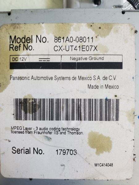 Description Donor Vehicle VIN: 5TDYK3DC4DS384807 Model: SIENNA Year: 2013 Mileage: 101000 (0 = not available or unknown) Stock Number: 210071 Store Number: 1 Part Detail Part Grade: A Part Category: U Part Placement: Notes: XLE,3.5L,AT,COMM. MULTI 861A0-08011 This part will fit these makes and models with these options SIENNA 12-14 Communication; (multimedia interface) WARRANTY / GUARANTEE **Return Policy** All parts we sell come with a **60 Day Money Back Guarantee** unless otherwise stated. The 60 day period starts when you take possession of the part. We do not cover the cost of labor charges during the installation of your parts. All original shipping costs are non-refundable. **Standard Warranty** We offer a standard warranty on all mechanical parts. This covers the part only, no labor charges to install the part. We are not responsible for any improper installation or misdiagnosis. SHIPPING NOTESABOUT USHELP **All Toyota and Ford Inc.** ships to US addresses within the continental 48 states. **Shipping to Alaska, Hawaii, Puerto Rico, APO, FPO or PO Box addresses** is available for select parts only. **Local Pick-up at our facilities is available.** Please contact us prior to your purchase to arrange local pick-up. Buyer must select 'Buy It Now' prior to local pick-up. **Please contact us prior to purchasing this part** if you have any questions regarding our business policies, the warranties or guaranties we offer or the fitment of this part with your vehicle. **Parts Grading.** A standard code system is used to communicate the condition and quality of a part between automotive recyclers, automotive repair shops, and insurers. Knowing how these codes are used will help you understand whether the part meets your expectations before you buy it and what you can expect from the part when you receive it. **A Grade** \- The highest quality part. It is of low miles and/or exceptional condition for its age. **B Grade** \- The second level quality part. It is of average miles and normal condition for its age. **C Grade** \- The third level quality part. It has high miles and/or light damage. **No Grade** \- A part that has not yet been graded.