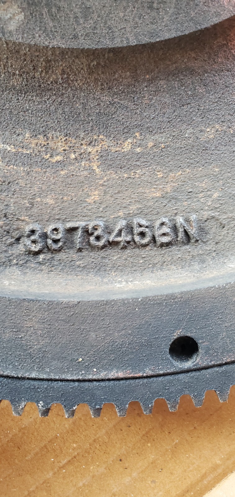 168 tooth Flywheel for a Chevy Manual transmission. Stamped 3973456N Steel