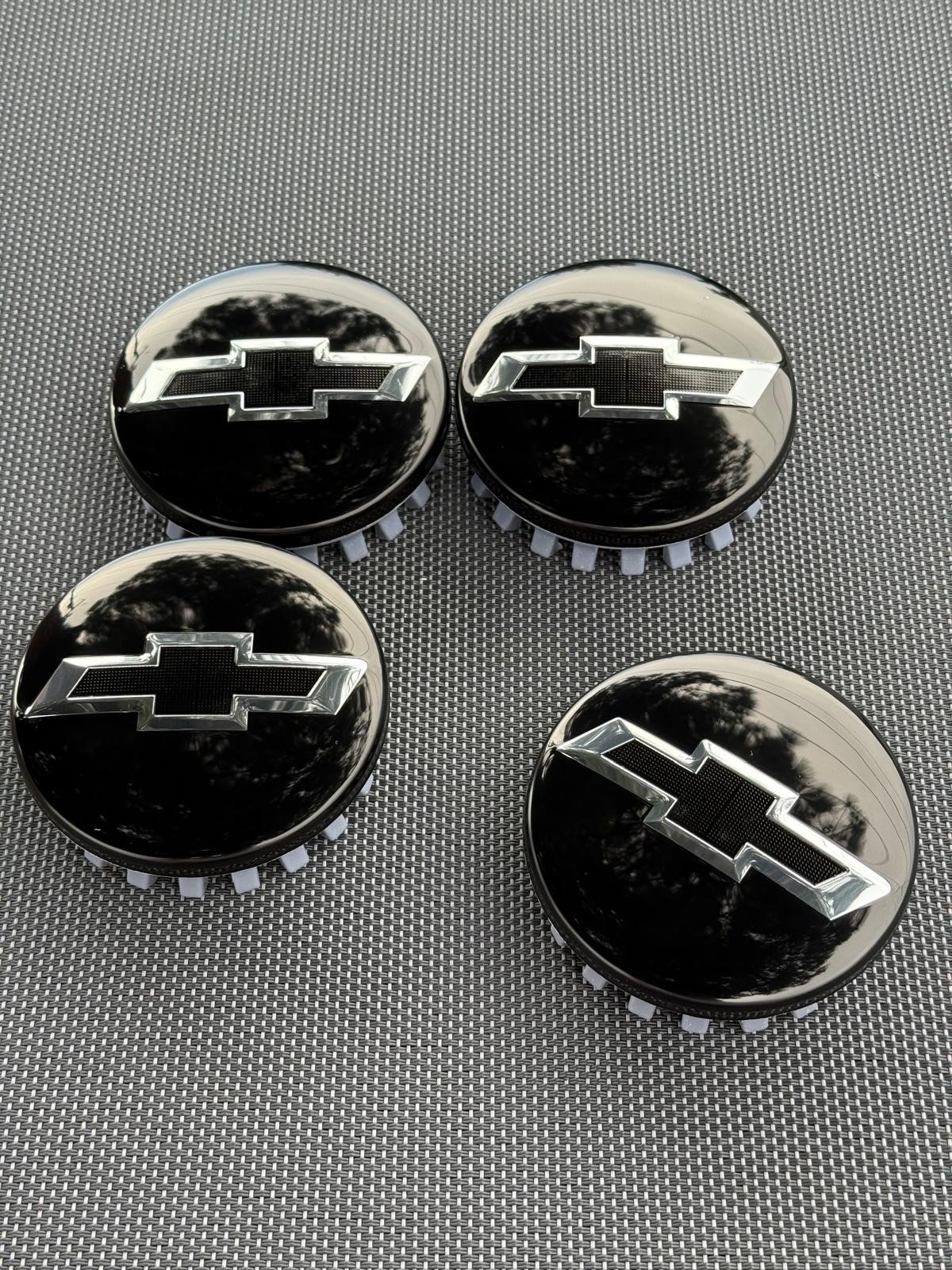CHEVROLET 4X 83mm BLACK Wheel Center Caps SILVERADO, SUBURBAN, TAHOE
