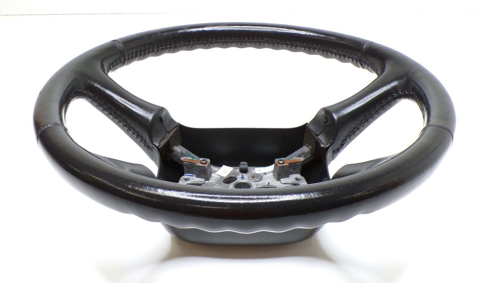 Black leather steering wheel. Has wear as pictured. Color and condition as pictured. Note this wheel has no buttons. Removed from a 2002 Silverado will fit 98-02 Silverado Sierra Tahoe Yukon or Suburban. Make sure the wheel you are replacing looks exactly like this and has the same options as your wheel for correct fitment.