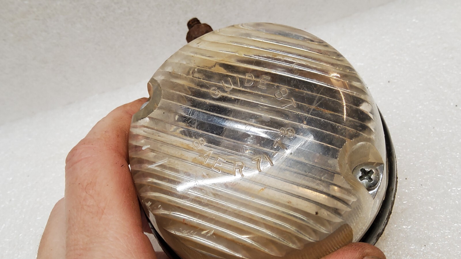 1971, 1972 and 1973 Chevrolet and G.M.C. Pickup trucks Reverse/Backup Light Assembly and lens OEM GUIDE FIA 55 housing LENS 8T SAE R 71-73 lense Fits most F Stepside beds Used condition, untested. Please check part numbers against your application. Free shipping in the USA 🇺🇸 D4HS
