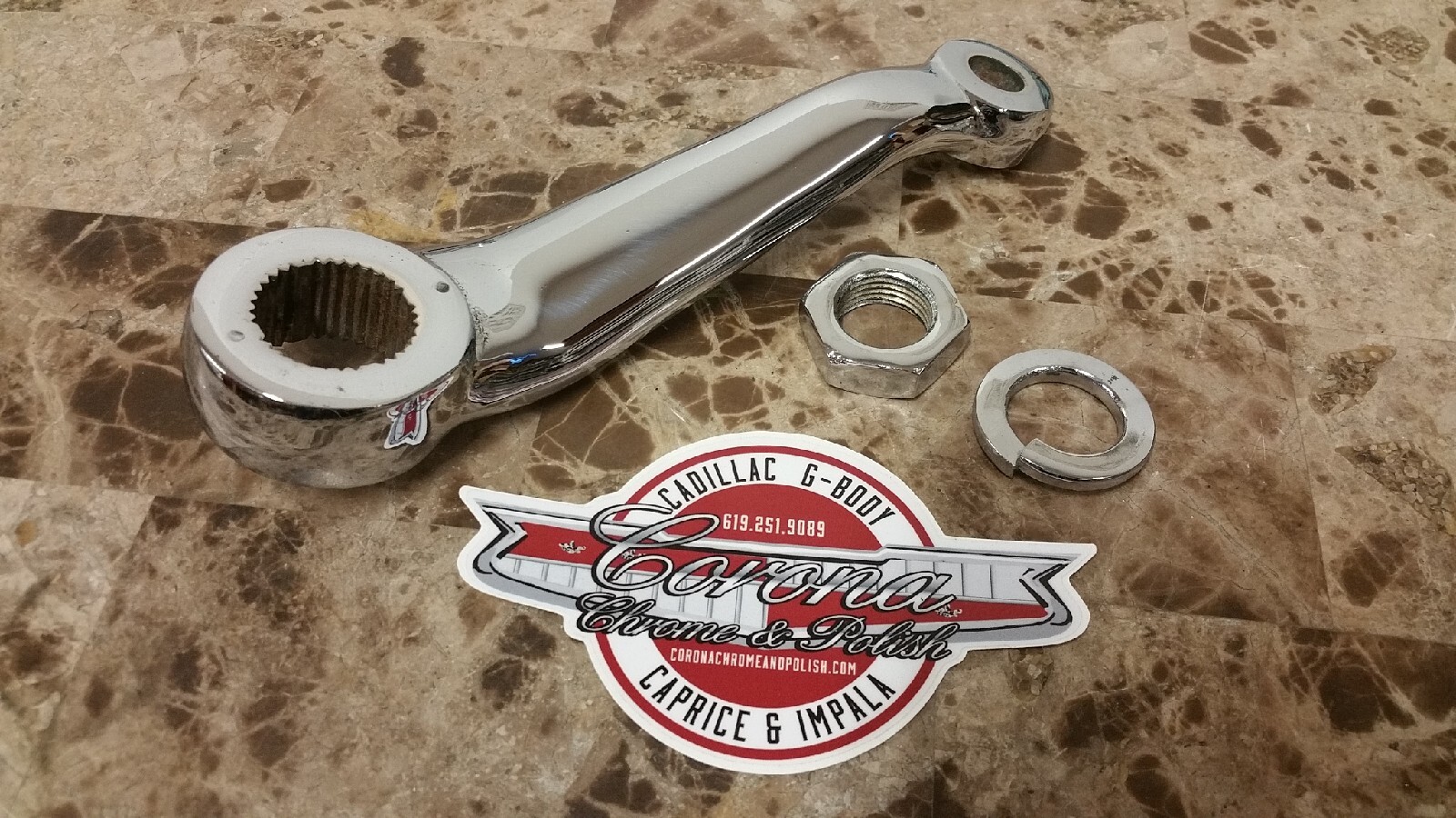 ORIGINAL EQUIPMENT Selling Chrome 605 Series PITMAN ARM, Nut & Lock Washer. Fits 78-87 Gbody. Follow me on Instagram @coronachrome International Shipping available PLEASE CONTACT FOR ACTUAL SHIPPING QUOTE. Another Corona Chrome Product