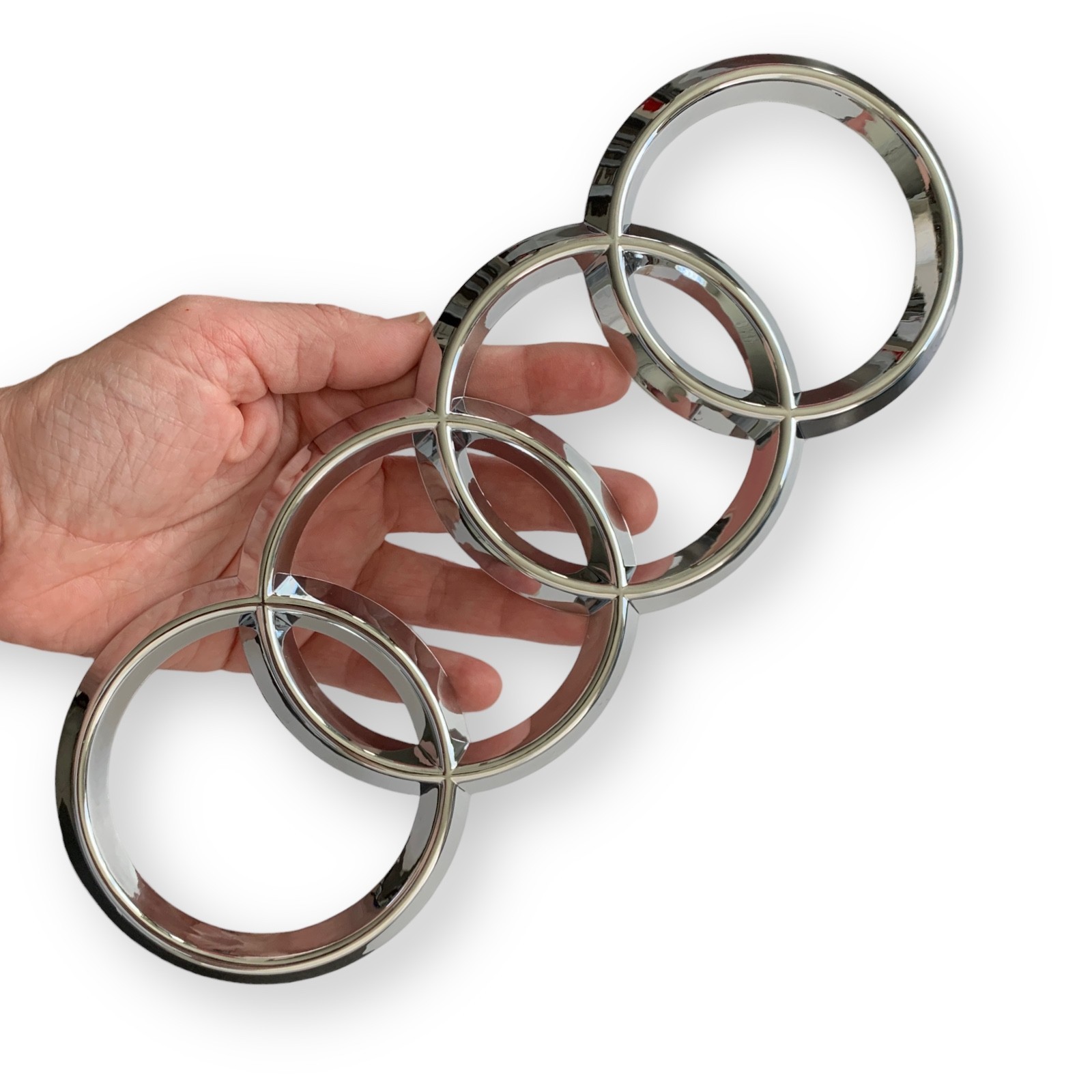 # Silver Chrome Rings Trunk Badge for Your Audi This is a great-looking **silver chrome rings emblem** designed for the back of your Audi. If your current one is faded, chipped, or you just want to swap it out for a fresh look, this badge is an easy replacement for the trunk lid. - **Clean Look:** The chrome finish is bright and gives the back of your car a sharp, clean appearance. - **Ready to Go:** It has a self-adhesive backing, so you just peel and stick it right into the factory location. - **Holds Up Well:** It's designed to be waterproof and heat-resistant, handling all kinds of weather. ### **Key Fitment Note** - **Size:** This emblem measures approximately **7.59” x 2.65” (192mm x 66mm)**. Please measure the space on your trunk to confirm this size will work _before_ you order. - **Flat Rings Only:** This badge is **ONLY** for vehicles that use the flat style of rings. ### **Compatible Models** 2010-2019 Audi A1 2006-2019 Audi A3 / S3 2005-2015 Audi A4 / S4 2008-2016 Audi A5 / S5 2002-2010 Audi A6 / S6 2012-2019 Audi A7 / S7 - **NOTE:** ONLY FOR VEHICLES WITH FLAT RINGS 2011-2019 Audi Q3 / SQ3 2017-2018 Audi Q5 / SQ5 2006-2010 Audi Q7