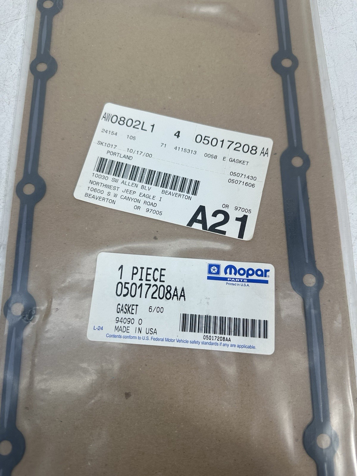 CHRYSLER INTAKE M'FOLD PAN GASKET 53032603AA NEW OEM 53032603AA