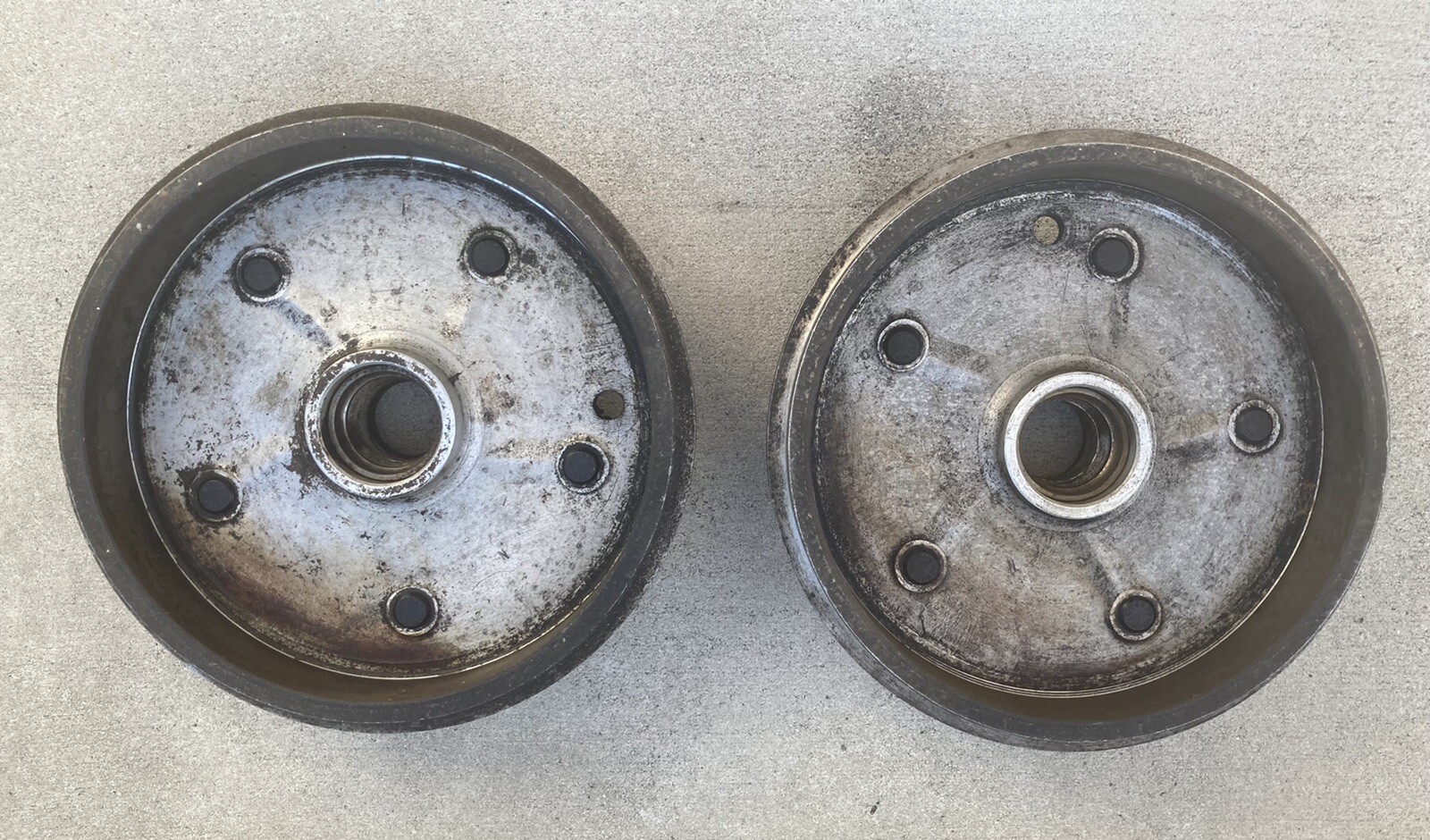 CLEAN USED ORIGINAL GENUINE PORSCHE 356 PRE-A 356A FRONT BRAKE DRUMS PAIR EARLY. Here’s a pair of Porsche 356 Pre-A or 356A front brake drums. I’ve had these for 40-45 years and they’ve always had dry inside storage. I had saved them as spares and never used them. They are the early version without the 5 extra holes. The factory manual had a section on subsequent drilling of the holes as I recall. They look very nice with no apparent corrosion or cracks, like we used to find decades ago. The original lug nuts are still on them, along with four spacers. Please check out the photos, these are the parts you will receive. I like the fact that they have not been bead blasted or wire brushed. Just like the day they were removed. Thanks for looking and please ask if you have any questions. Pick up in Hudson Florida is always encouraged on these heavy items, however I packed carefully and ship promptly and provide tracking and insurance. .
