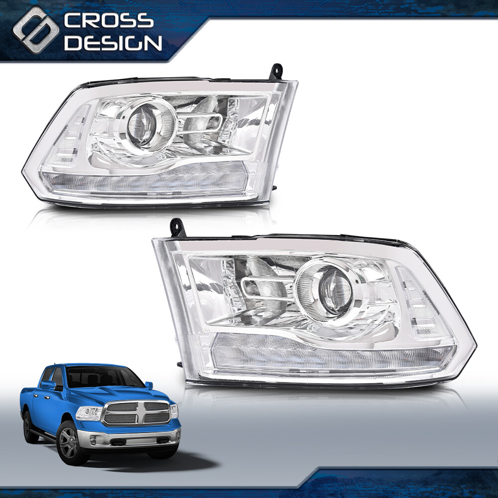 Clear LED DRL Headlight w Bulb Harness Fits 1318 Dodge Ram 1500 2500 Pro G1N