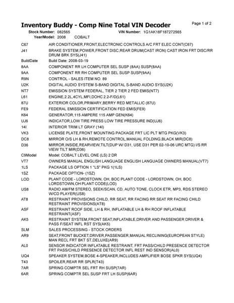 - Donor VIN: 1G1AK18F187272565