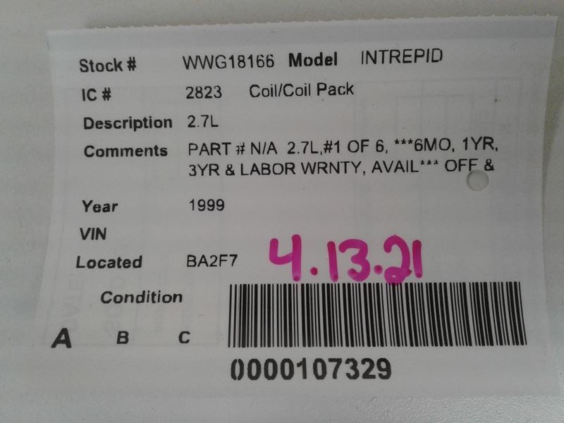 - Conditions & Options: PART N A 2.7L, 1 OF 6, 6MO, 1Y
