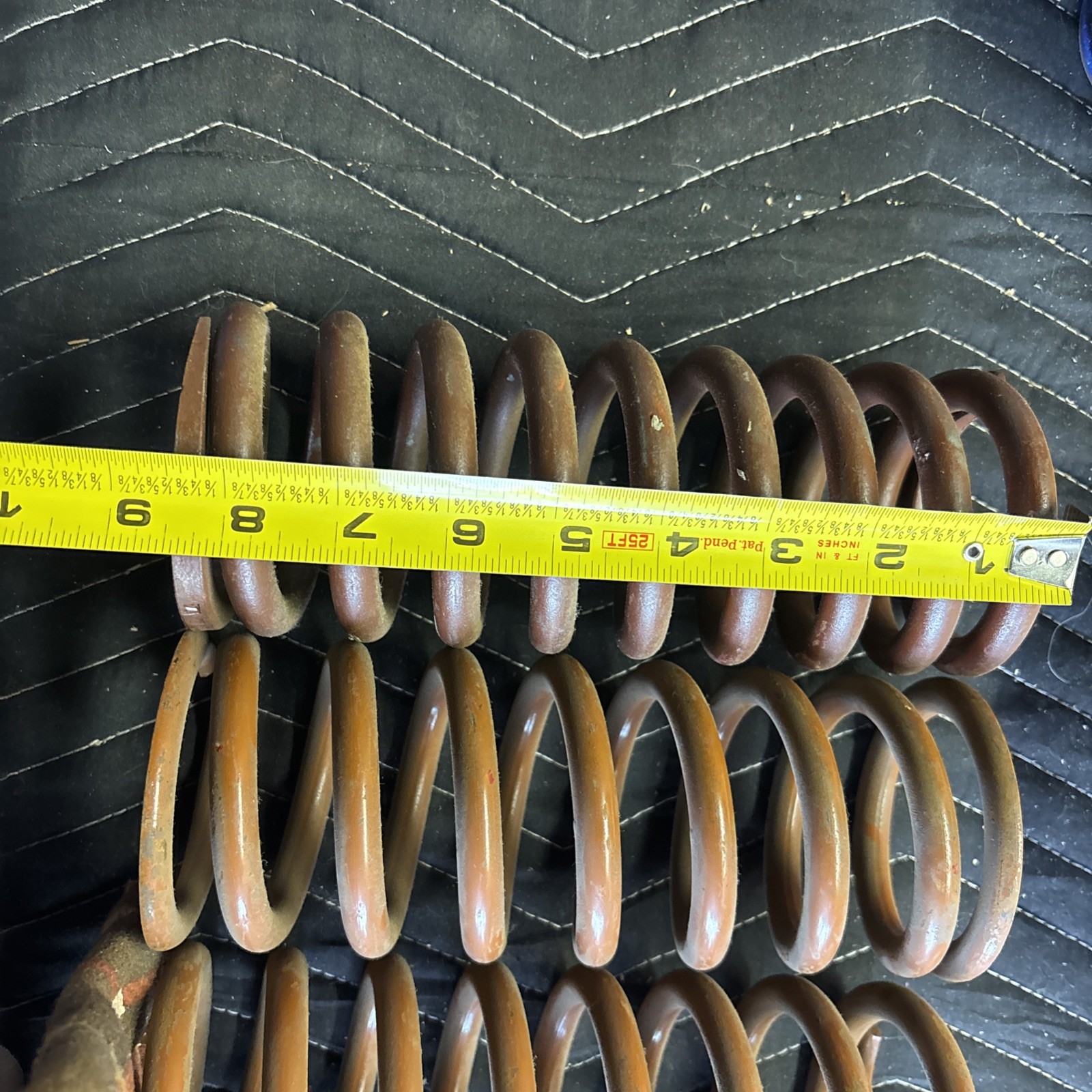 These springs came with the property I bought so I don’t know the origin but they look clean and are not rusty. No cracks and appear to be in good condition. all 4 are identical in measurements.