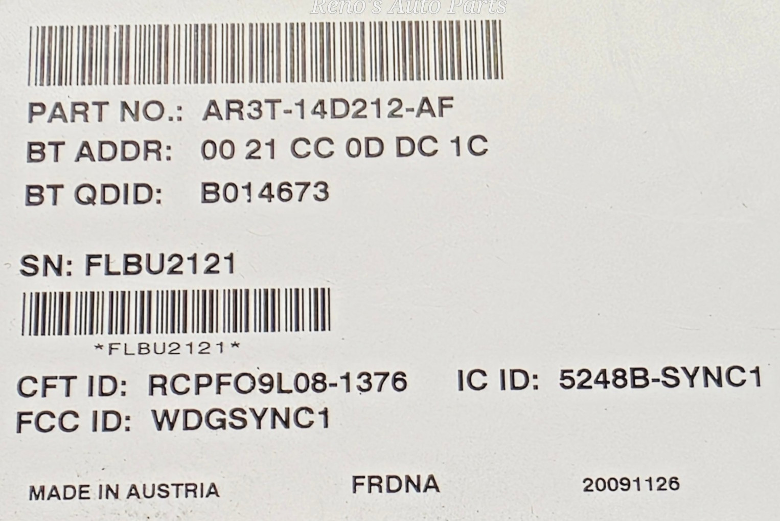 - Conditions & Options: SYNC CONTROL MOD, AR3T-14D212-AF