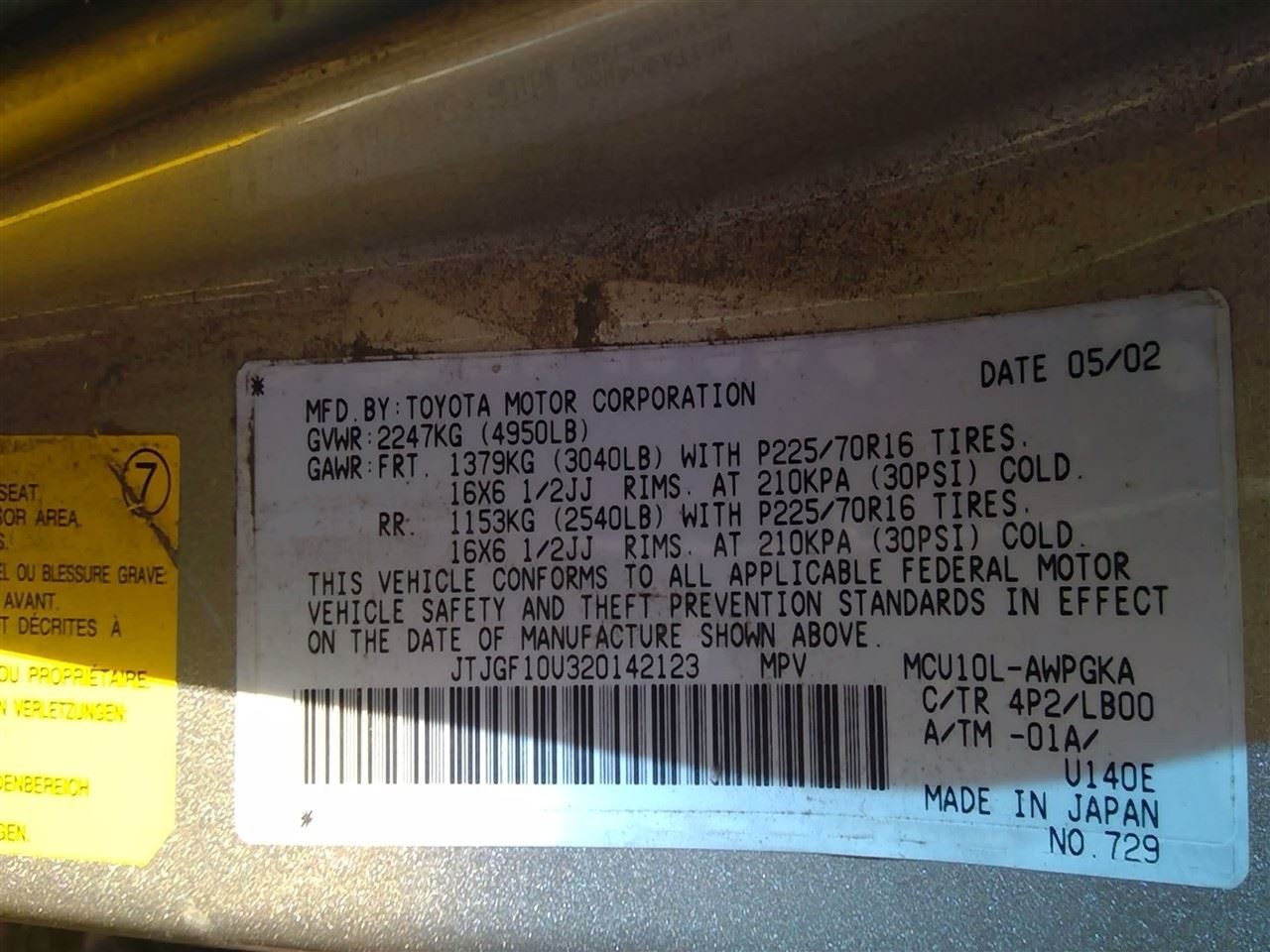 - VIN #: JTJGF10U320142123