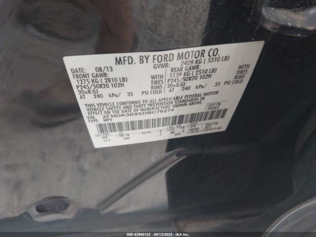 - VIN #: 2FMDK3K9XDBC76274