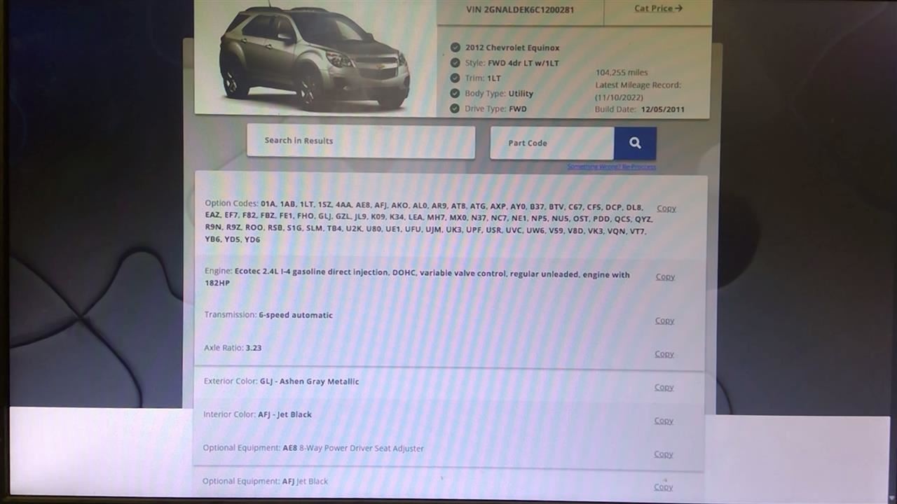 - Donor VIN: 2GNALDEK6C1200281