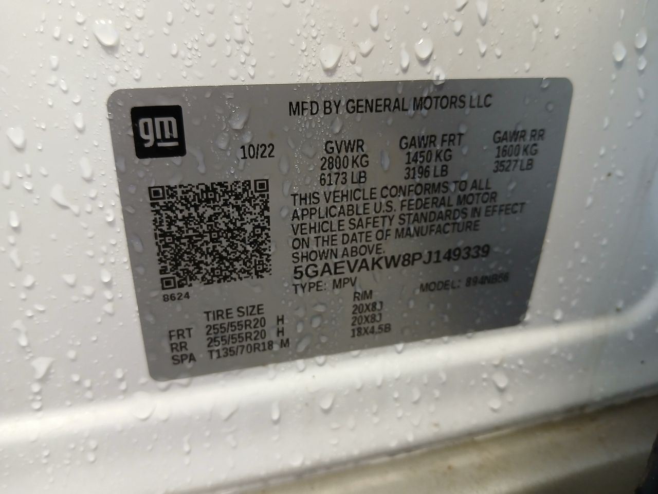 - VIN #: 5GAEVAKW8PJ149339