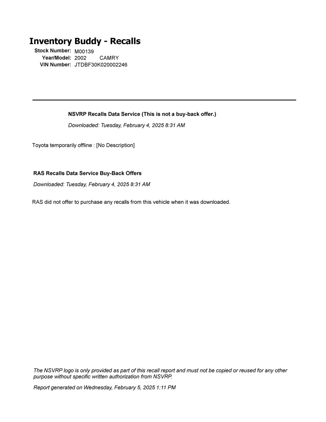 - Donor VIN: JTDBF30K020002246