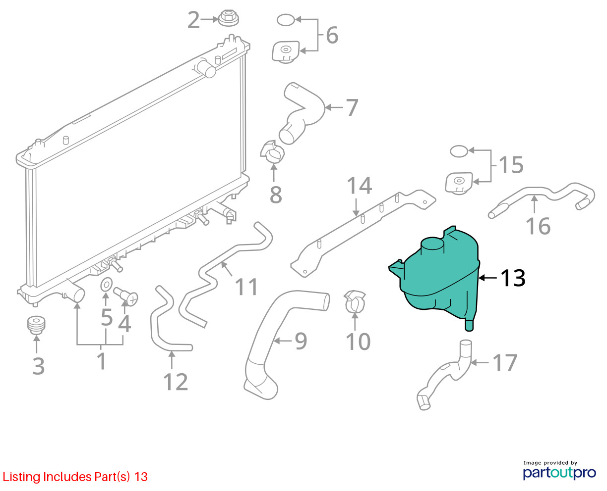 Coolant Reservoir Radiator Fits 16-22 INFINITI Q50 5135043 ### This part is from a 2018 Q50 with 103000 miles on it. This part has been fully tested while installed and will go through our industry leading quality control inspection before shipping. This part is backed by our **90 Day Money Back Guarantee** at no additional charge. Please include the **Item ID** in your message so we know which part you are asking about. We answer all questions promptly during regular business hours. Our Promise ### **Our Promise** is that you are completely satisfied with every part you buy from Midway Auto Parts ### This part is covered by our **90 Day Money Back Guarantee**. If you have a problem with the part, changed your mind or the part does not fit, simply let us know. You have 90 Days from the purchase date to return it for a full refund. If you need help with returning an item, simply send us a message. We are here to help. About Midway Auto Parts  ### Midway Auto Parts is a proud member of Team PRP. Team PRP is the largest group of independent automotive recyclers in North America. Each Team PRP member uses an identical quality assurance program based on ISO 9000 standards. The result is a nationwide label that delivers consistently high quality parts and maximizes consumer, mechanical repairer, collision center, and estimator confidence. ### If you need a part that we do not have in stock, we can find it from our network of some of the best recyclers in the country. Shipping Information ### All orders placed after 1pm EST will begin being processed by the next business day. Please refer to our current handling time under the Shipping, Returns and Payments section on the listing for when the item will be shipped out. Our facility is closed on weekends and holidays. ### This part will ship via UPS or FedEx with live tracking information. You will receive a message with tracking information as soon as your part ships. Once shipped, please allow up to 6 business days for your part to arrive, depending on your location.