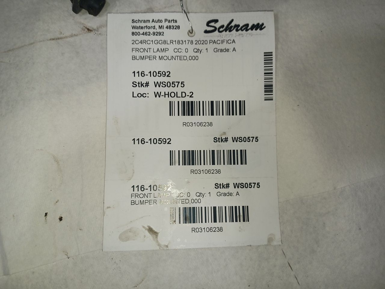 1923   Description BUMPER MOUNTED,000 Mileage: 86000 This item will fit the following vehicles/applications: PACIFICA 20 fog-driving (bumper mounted), w/LED **Illuminate the Way with Reliable Fog Light and/or Running Light!** **Schram Auto and Truck Parts - Fog Lights and Running Lights** At Schram Auto and Truck Parts, Inc., we recognize the significance of clear visibility in various driving conditions. Our **Fog Light / Running Light** not only enhances your safety, but it also adds a touch of style to your vehicle. We take pride in offering tested and inspected fog lamps, all in perfect working condition. As a trusted automotive recycling company since 1923, we provide quality original equipment fog lights that continue to serve an essential role in helping others repair, restore, and enhance their vehicles. Rest assured that all of our fog lamps have undergone testing and inspection to ensure their flawless performance. Please note that the fog lamps are sold without grilles or bezels, unless stated otherwise. Wear and scratches from normal use are expected on this item. To ensure the perfect fit, refer to the 'Fitment' section of this listing for precise compatibility. We strongly recommend confirming compatibility before making a purchase to ensure a seamless fit. **Your Questions Are Important** If you have any questions or need further information, please ask us before making a purchase! We're here to provide the details you need to make an informed decision. Illuminate the road ahead with reliable Fog and Running Lights from Schram Auto and Truck Parts, Inc. Join us in our commitment to providing top-notch solutions while enhancing your vehicle's safety and style. Vehicle 2020 PACIFICA Mileage 86000 Part Grade A What's this?