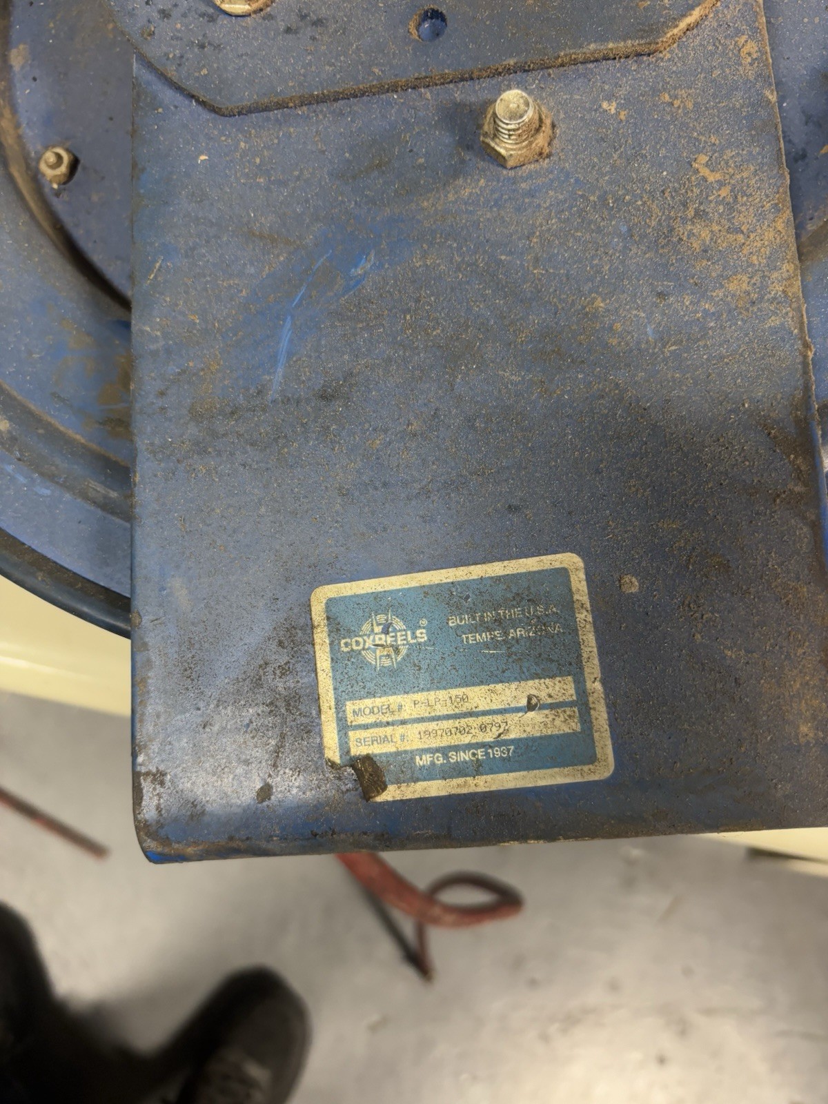 Coxreels P-LP-150, Low Pressure Spring Rewind Hose Reel: 1/4" 50' Hose USED. Condition is Used. Shipped with UPS Ground.