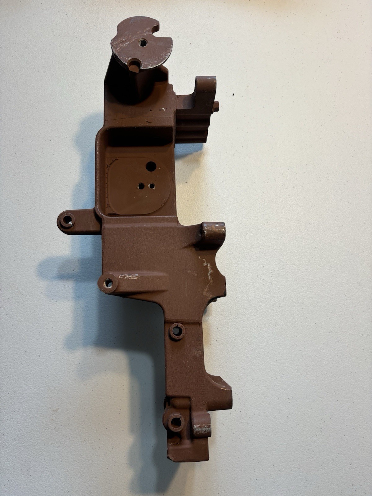 Cummins ISX mounting bracket for dohc engines for the accessories drive. This bracket has been inspected and cleaned and primer coated. All holes have been checked for thread quality and cleaned. It is a OEM part and will bolt direct to the engine.