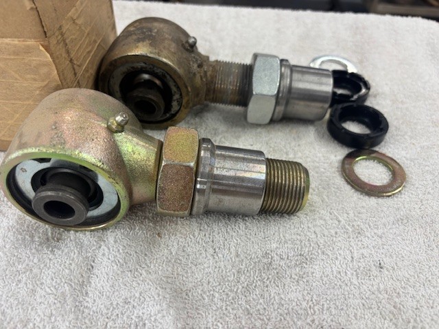 This listing is for a pair RH and LH 2'' x 1 1/4'' Rod End Johnny Joints. 9/16'' bolt hole through the bushing. One is new and one is used and has a Currie rebuild kit for it. Included are the correct jam nuts and a pair of weld bungs. Buyers' responsibility as to fitment to their vehicle. Ships to lower 48 States only via USPS. Sold as pictured.
