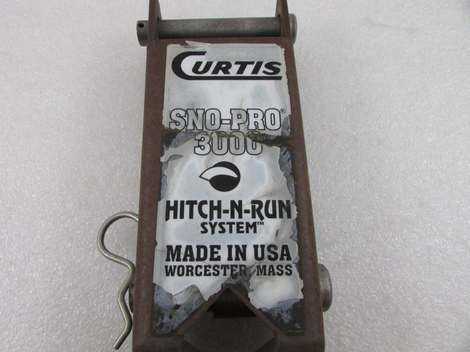 **Curtis Sno-Pro 3000 Lift Arm 1TBP40 w/ Pins, Spacers & Lift Chain Hitch-N-Run System** **This Listing is for one** **Curtis Sno-Pro 3000 Lift Arm 1TBP40 w/ Pins, Spacers & Lift Chain Hitch-N-Run System** **Condition:** Used OEM Curtis Hitch-N-Run/Sno-Pro 3000 snow plow lift arm with pins, spacers and lift chain for full size, full trip straight blades and the Sno-Pro 3000 Home Plow. This will not work on a trip edge plow or v-plow. Part number 1TBP40 (lift arm), 1TBP108 (pin), 1TBP42 (pin) missing cotter pin, 1TBP109 (spacer-Qty 2), 1TBP30 (5/16" x 24" lift chain), 1TBP31 (5/16" Anchor Shackle). This lift arm is in good overall condition. It has rust, scratches, chipped, peeling label, etc. Also has some wear from use around the holes and where the chain mounts. Be sure not to miss out on a single one of them! # International Buyers Please Note: Import duties, taxes and charges are **not included** in the item price or shipping charges. These charges are the buyer's responsibility. These charges are normally collected by the delivering freight (shipping) company or when you pick the item up ? please do not confuse them for additional shipping charges. We do **not** mark merchandise values below value or mark items as "gifts" -US and International government regulations prohibit such behavior.
