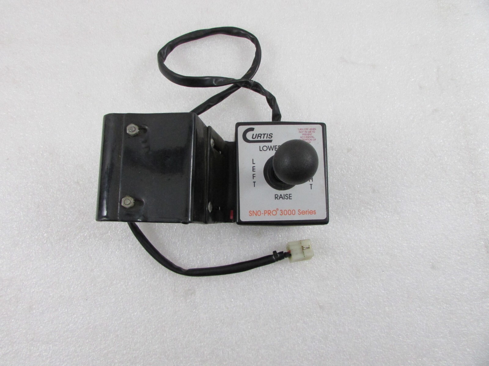 **Curtis Sno-Pro 3000 Straight Blade****6-Pin** **Joystick Snow Plow Controller w/ Door Mount** **This Listing is for one** **Curtis Sno-Pro 3000 Straight Blade 6-Pin Joystick Snow Plow Controller w/ Door Mount** **Condition:** Used OEM Curtis Sno-Pro 3000 joystick controller for straight blade plows. 6 pins in 9 hole plug. Tested and works well. Very nice cosmetic condition. Look carefully at all photos for best description. Comes with door mount shown. Be sure not to miss out on a single one of them! # International Buyers Please Note: Import duties, taxes and charges are **not included** in the item price or shipping charges. These charges are the buyer's responsibility. These charges are normally collected by the delivering freight (shipping) company or when you pick the item up ? please do not confuse them for additional shipping charges. We do **not** mark merchandise values below value or mark items as "gifts" -US and International government regulations prohibit such behavior.
