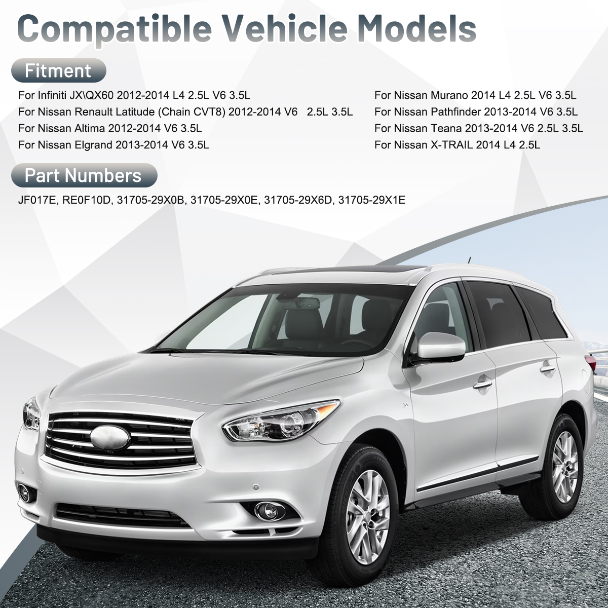 - Fitment 2: For INFINITI JX35 2013-2013