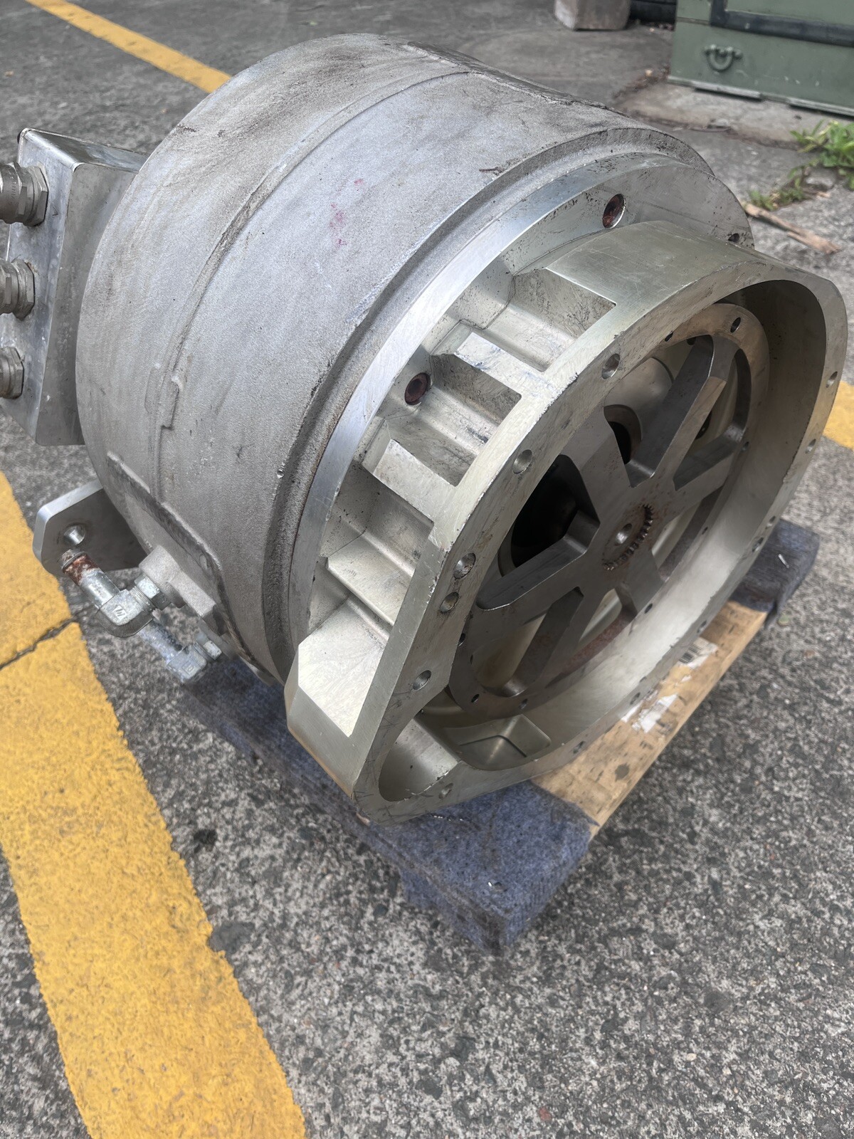 Heavy duty UQM / Danfoss traction motor. Believe this to be an earlier model identical to the HD250. Approx 14” diameter, 9” wide. Splined output shaft with a custom adapter on it, could be remachined to use for a custom project. Power leads were cut outside of the junction box, perfect condition internally. Rotates very easily. Perfect for a heavy duty EV project, this motor can make around 2000 ft/lbs of torque at peak.