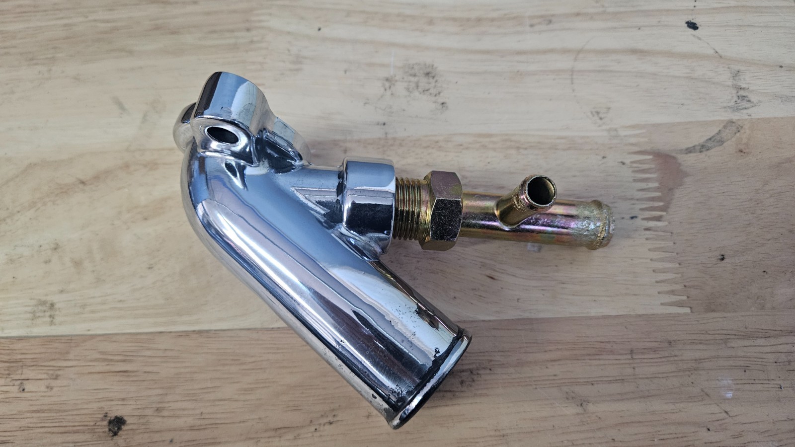 This slightly used top is crafted specifically for the Datsun 280ZX (1979-1983), this L28 engine coolant outlet neck Datsun 280ZX 79-83 L28 Engine Coolant Outlet Neck Polished for the Lower Radiator hose, mounts to timing cover Its polished construction provides durability and consistent function, vital for the proper regulation of your vehicle's engine temperature and looks great too. Keeps it from future corrosion. The top of the thermostat housing is designed to accommodate the unique specifications of your 280ZX, seamlessly integrating with the existing coolant system. Maintain the integrity of your classic Nissan with this essential component, tailored to meet the exact standards of your car's engineering.