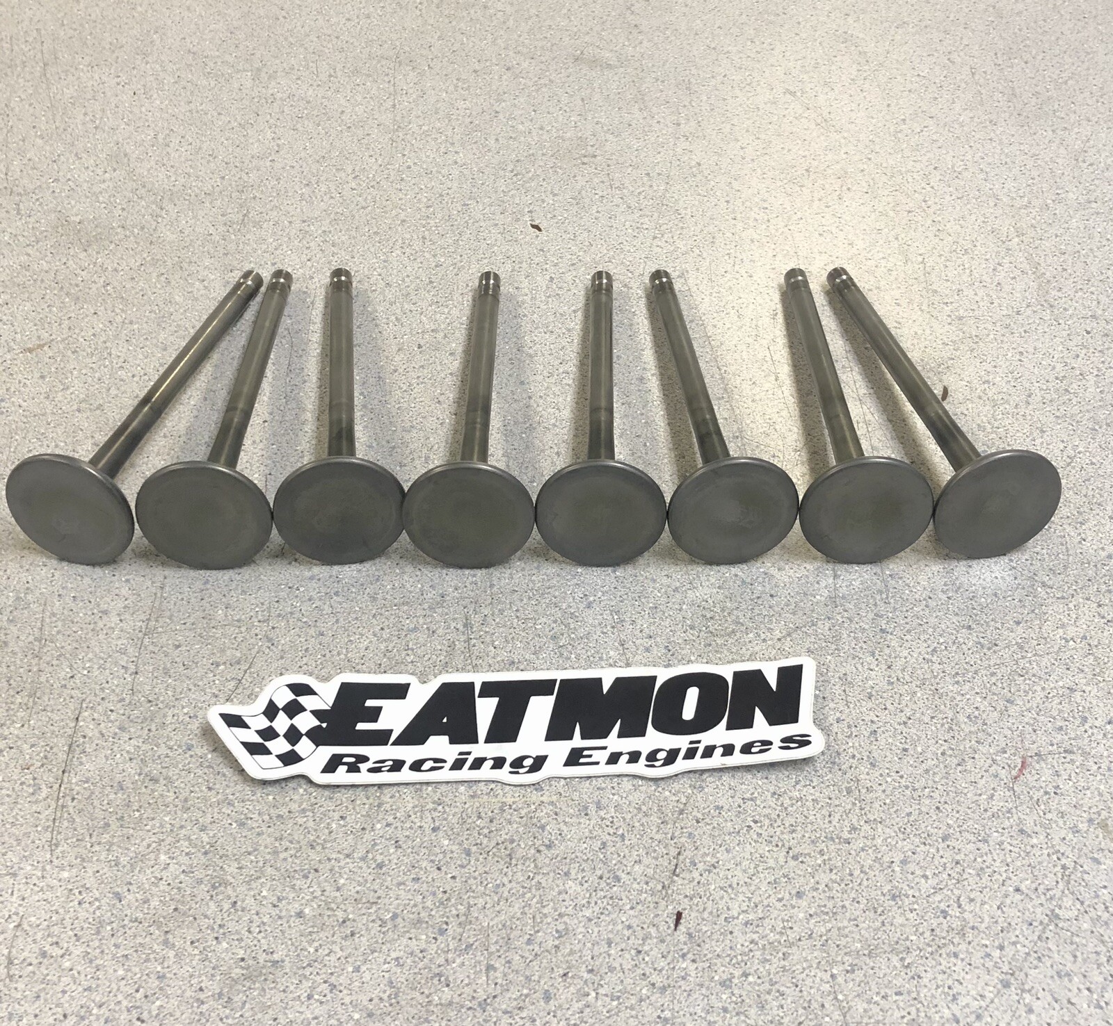 8 good used Del West titanium valves, these measure 1.600 head diameter x 5.800 overall length with 11/32 stem size, .300 tip length, with hard tip, radius keeper groove, dish face.