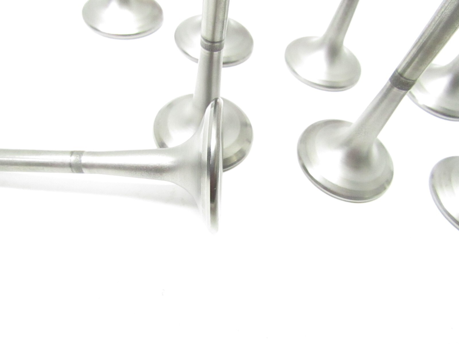 Here is a used set of 8 DEL WEST titanium exhaust valves. They are 7mm stem, 1.550 head and are about 5.455 long. They weigh about 56 grams. They are the bead groove type. Nice set of 8 exhaust valves. All our valves are cleaned and checked. Will combine shipping on multiple orders.